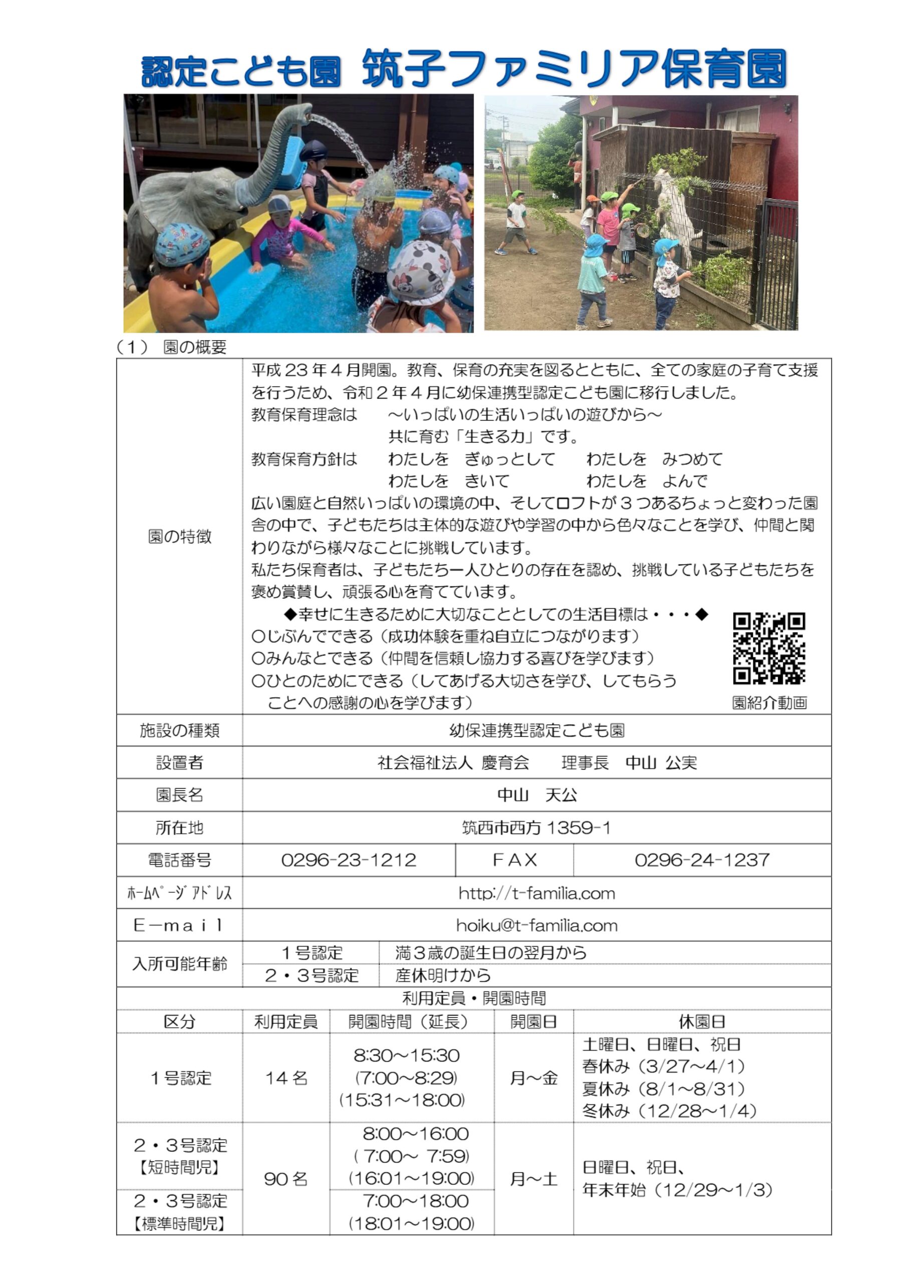 筑西市 認定こども園 筑子ファミリア保育園のホームページ