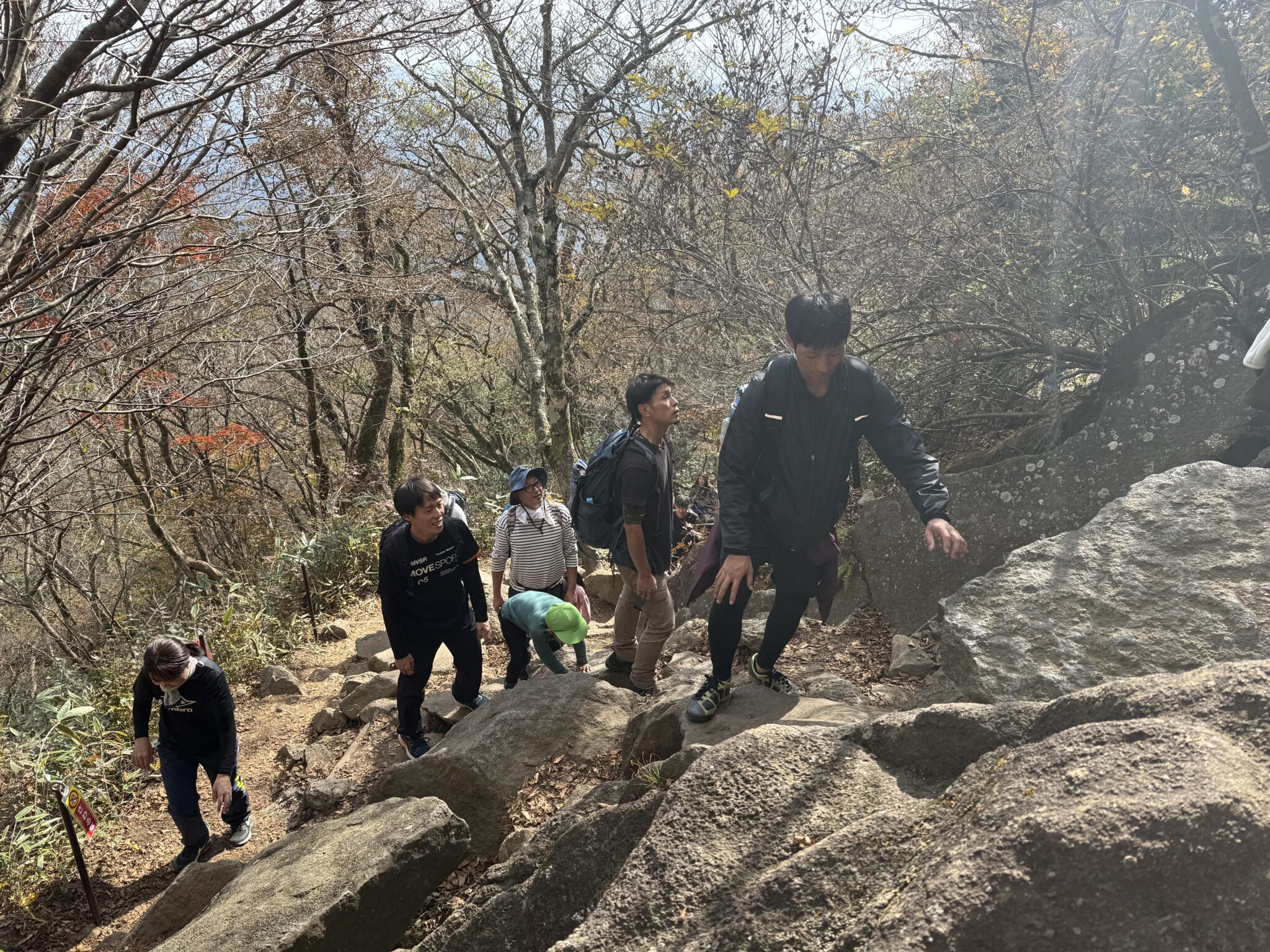 当日は登山日和のいいお天気!出発地点でがんばるぞー!と気合が入りました!