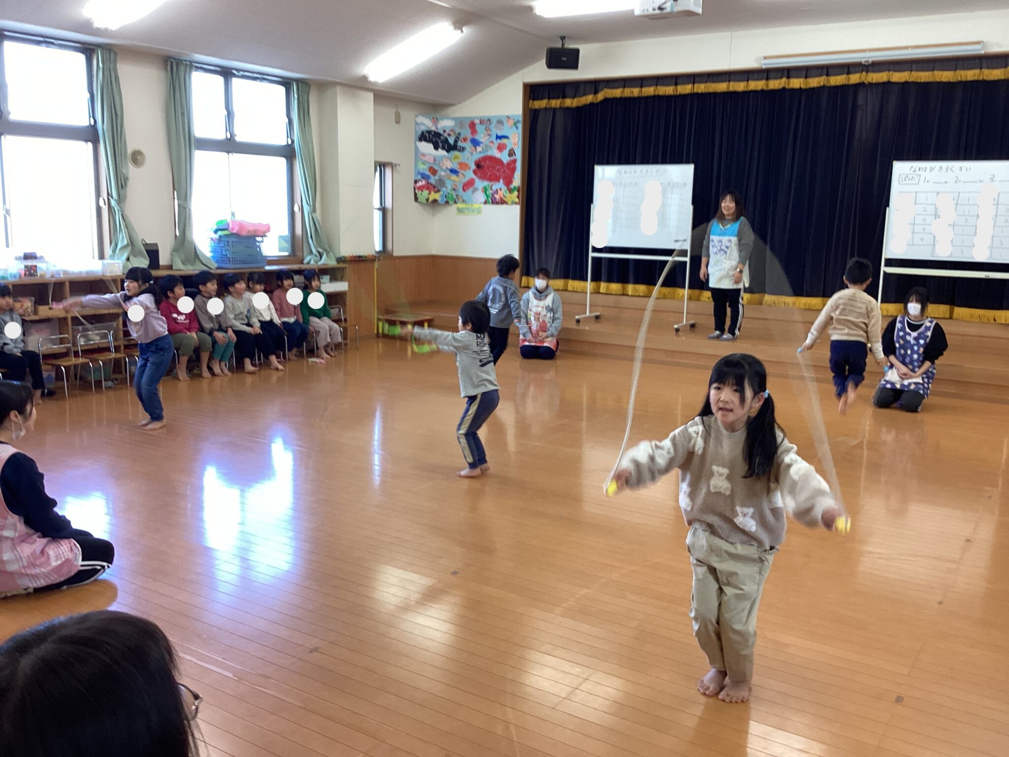 1月13日に4,5歳児のお友だちが、なわとび記録会をしました。
